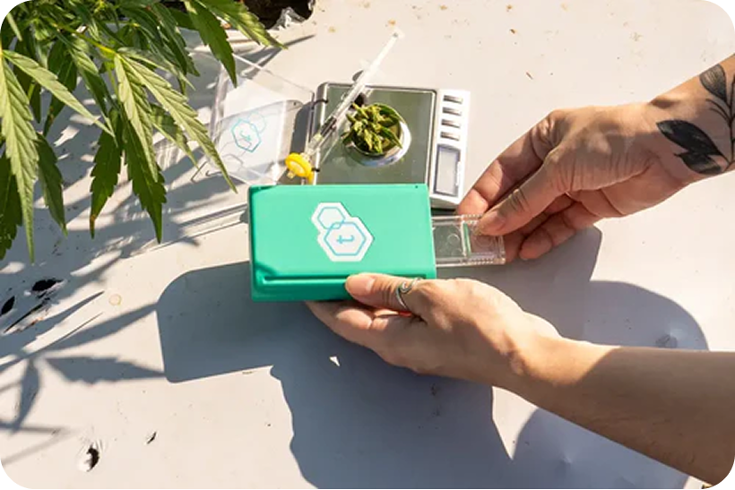 Start the test from your phone using the tCheck app and get clear potency results in minutes.